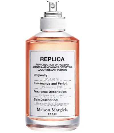 Maison Margielas dufte har en dedikeret kultfølge, og Replica On a Date skiller sig bestemt ud selv blandt de andre. Det er en varm, flirtende og romantisk buket med rosenblade og bergamot sammen med solbærspiritus og patchouli; de to sidstnævnte er det, der tilføjer druenoterne. Den er afrundet med geraniumolie, davanaolie, patchouli-essens, vetiverolie og moskus.